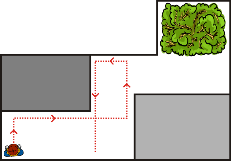 Eteenpäin, oikealle, eteenpäin, vasemmalle, eteenpäin, vasemmalle, eteenpäin, vasemmalle, eteenpäin |